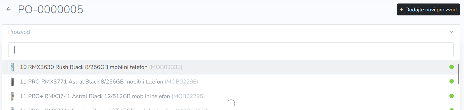 Nastavite sa pretraživanjem i odabirom proizvoda/varijanti proizvoda za koje želite da dopunite zalihe;