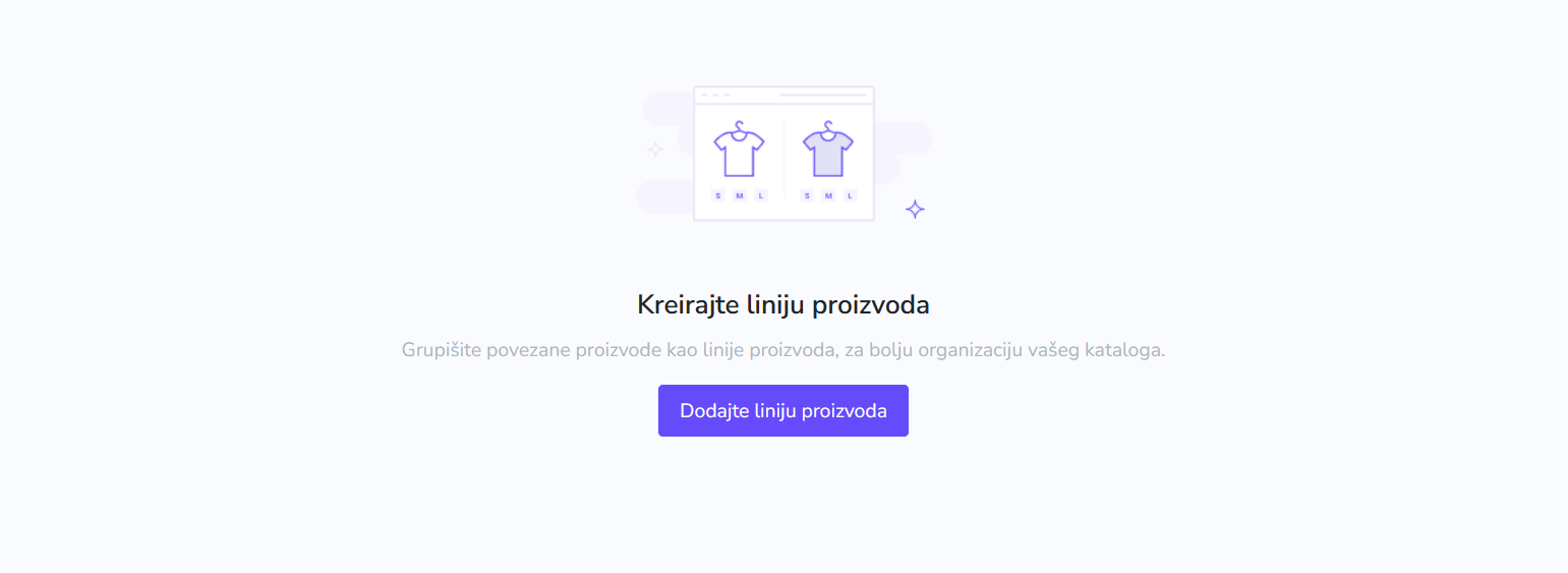 Idite na Katalog > Linije proizvoda i pritisnite dugme Dodajte liniju proizvoda;
